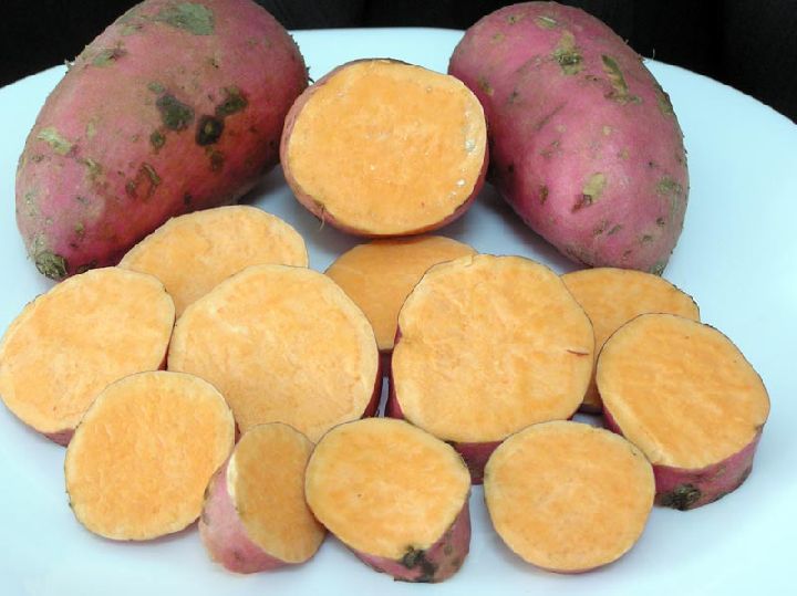 El tubérculo puede ser de carne rojiza o blanca, variando en función de la cantidad de azúcar que contengan, son siempre más dulces los rojos. Tiene gran concentración de proteínas y almidón, posee también carotenos y vitamina A y C, de hecho, el cultivo de boniato en África llegó a ser un proyecto en 2001, originado en Perú, que intentaba cubrir las carencias de vitamina A de la población.