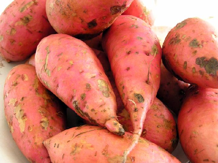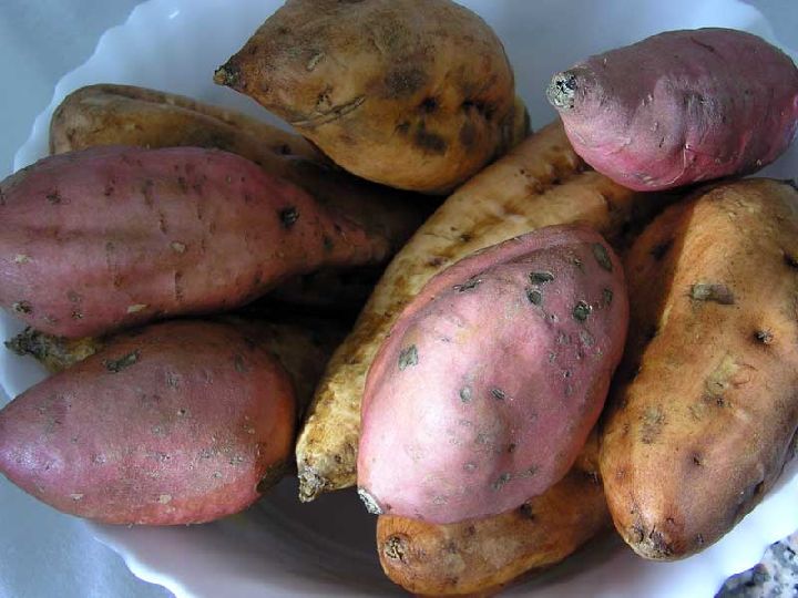 Las distintas variedades dan un producto también diferente en cuanto a dimensiones y color. Un boniato puede tener un peso de entre 100 gramos y 6 kilos, pero para el consumo humano lo normal es encontrar piezas de entre 100 y 300 gramos. Los hay alargados o globosos, siendo los dulces rojos los más consumidos en Murcia y variando tan sólo la tonalidad de su espléndido color anaranjado según variedades.