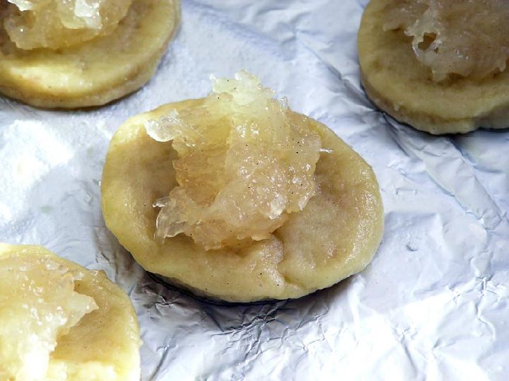 Con nuestra masa preparada sólo nos quedará estirarla, dejando una lámina de unos tres milímetros y cortarla, una vaso por ejemplo será un excelente cortador. Haremos bases de masa, les echaremos el cabello de ángel (mezclado con un poquito de canela) y taparemos con otra porción de masa, intentando cerrar los bordes.