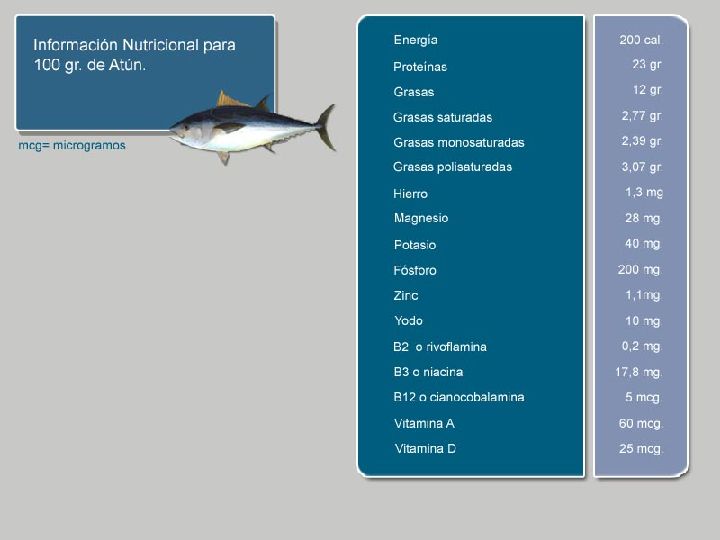 La carne del atún posee cifras cercanas al 12% de grasa rica en ácidos omega-3 que ayudan a rebajar los niveles de colesterol y triglicéridos de la sangre, disminuyendo el riesgo de dolencias como la aterosclerosis, trombosis, así como la prevención de enfermedades cardiacas.