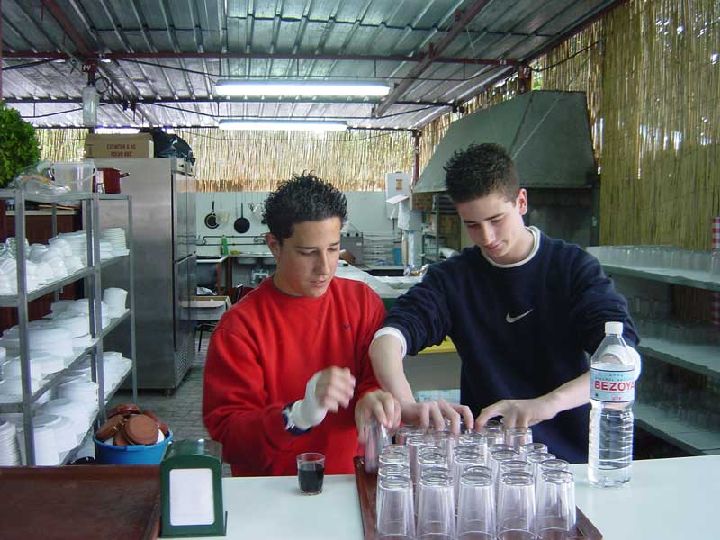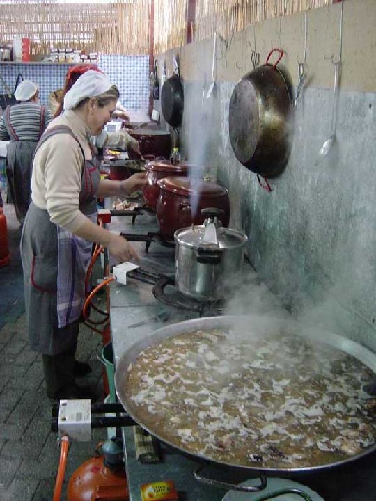 Preparando el arroz con conejo - Barraca de la Peña Huertana El Pimiento - Bando de la Huerta - Fiestas de Primavera 2004