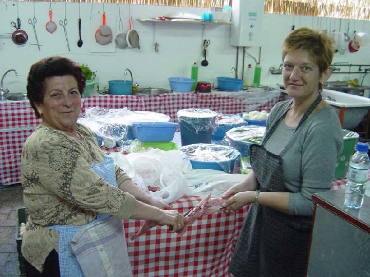 Preparando el conejo para el arroz - Barraca de la Peña Huertana El Pimiento - Bando de la Huerta - Fiestas de Primavera 2004