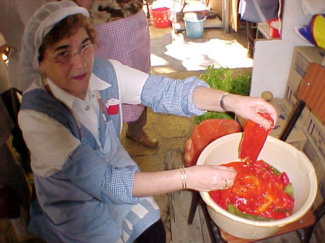 Elaboración de Migas - Barraca de la Peña Huertana Las Tenajas - Bando de la Huerta . Fiestas de Primavera 2004