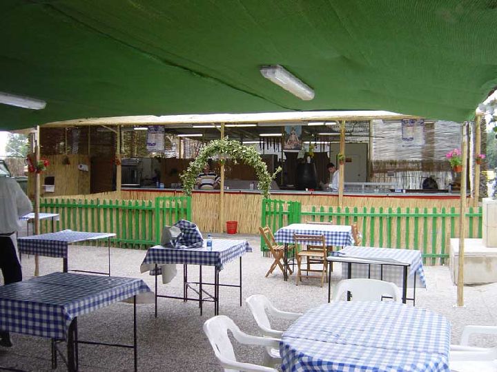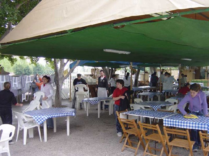 Los camareros preparan las mesas para la comida - Barraca de la Peña Huertana Almirez - Bando de la Huerta - Fiestas de Primavera 2004