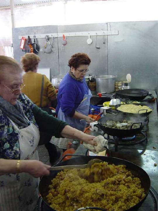 Todo preparado para echar el arroz - Barraca de la Peña Huertana Almirez - Bando de la Huerta - Fiestas de Primavera 2004