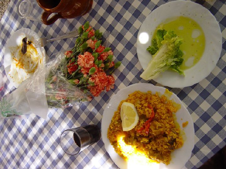 Arroz con pollo, una perdiz, un vinito... un menú típico de las Barracas - Barracas del Jardín de la Fama - Bando de la Huerta - Fiestas de Primavera 2004