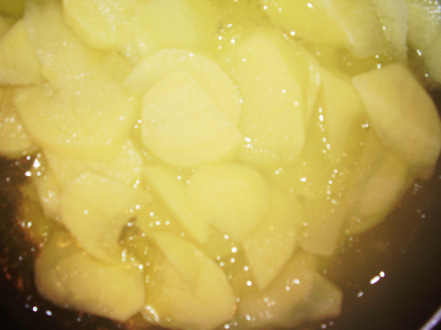Primer paso: cortamos las patatas y las freímos