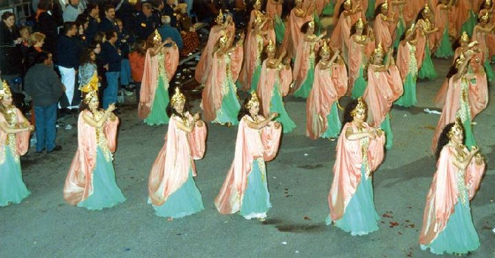 Su manifestación en la calle es repetida todos los días de las fiestas. Siempre desfila un grupo compacto de cuarenta o más componentes.