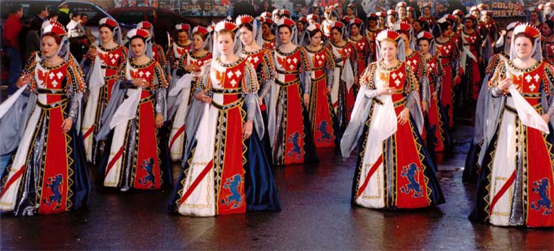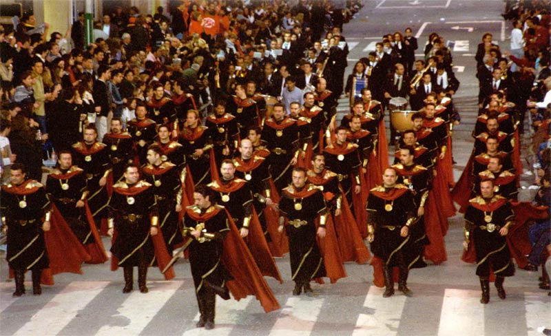 Se trata de una especie de pelotón en formación de fondo que avanza inexorablemente y se exhibe, conjugando elegancia y vistosidad no exenta de cierto aire de fuera militar que nos sugiere que estamos en tierras de frontera medieval.