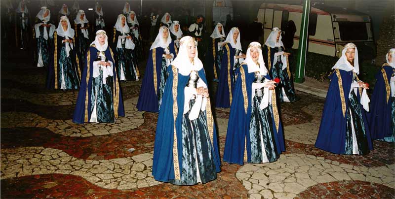 Su manifestación en la calle es repetida todos los días de las fiestas. Siempre desfila un grupo compacto de cuarenta o más componentes.