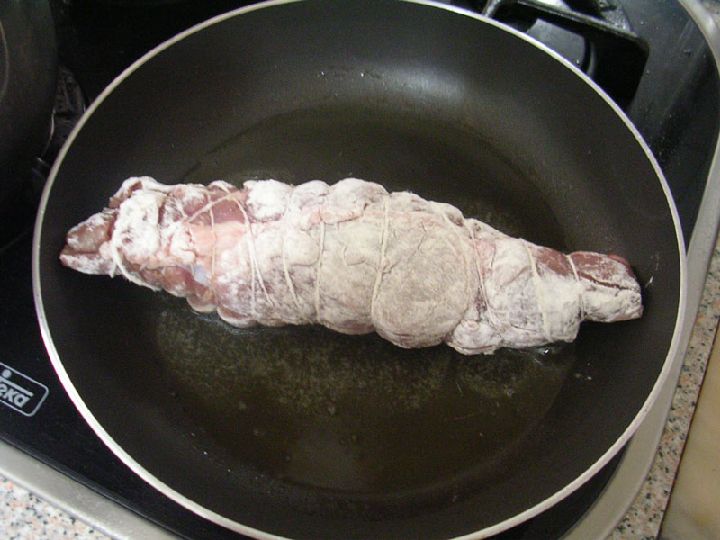 Cerramos y atamos con un hilo especial para cocinar. Una vez que los tengamos, enharinamos para sellar bien todos los poros y se nos quede más compacta.