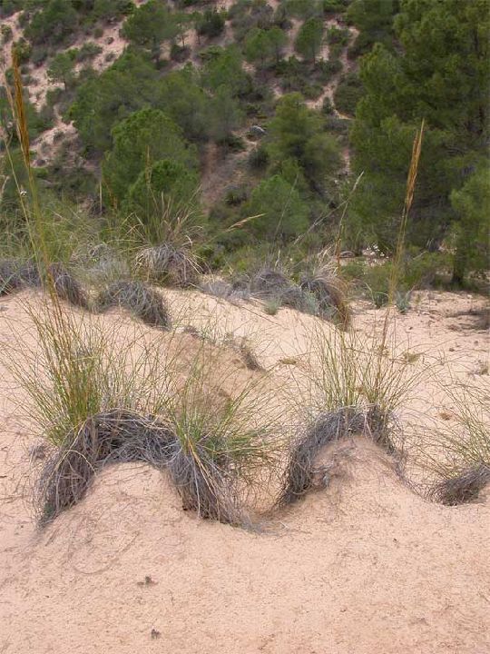 Arenal interior rico en carbonato cálcico que se encuentra en el LIC Sierras y Vega Alta del Segura y ríos Alhárabe y Moratalla. Formación muy escasa en la Región de Murcia. En ellas se desarrolla un tomillar caracterizado por la presencia de especies propias de dunas como Teucrium dunense o Helianthemum guerrae.