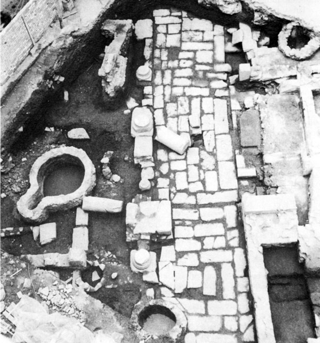 El pavimento de las calles romanas durante época republicana y primeros siglos del imperio destaca por su enlosado de piezas planas, poligonales irregulares de gran tamaño, bajo la que se extendería una amplia red de alcantarillado que evacuaba las aguas residuales hacia zonas del exterior de la ciudad (campos cercanos, ramblas y al mar).