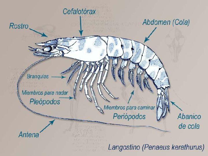 El langostino del Mar Menor o Panaeus kerathurus es un crustáceo de 10 patas, con el caparazón semiduro y de tonalidades rosadas con veteado horizontal amarronado (aunque existen otras variedades de langostinos que carecen de estas bandas).