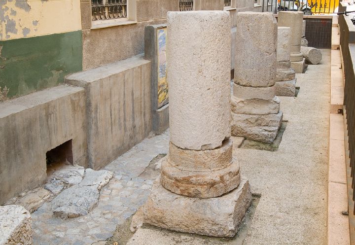 La columnata de orden toscano hallada en la calle Morería Baja o los restos relacionados con un almacén romano, procedentes de la calle Portería de las Monjas/Cuesta de la Baronesa, han sido identificados con vestigios vinculados con el puerto y el carácter mercantil de esta zona de la ciudad. Asimismo, un epígrafe del siglo I a.C procedente de Carthago Nova y actualmente conservado en el Museo Arqueológico Nacional de Madrid, hace referencia a la construcción de un muelle sobre pilares en el puerto de la ciudad.