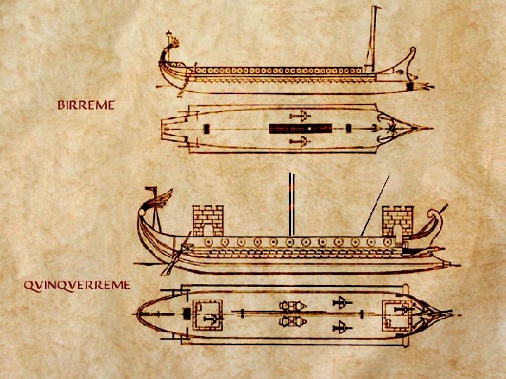 En época grecorromana apareció la distinción entre buque de guerra y buque mercante. Las embarcaciones destinadas a los combates bélicos recibían el nombre de 'longae' y eran ligeras y propulsadas mediante remos, pudiendo ser birremis, trirremis, quadremis o quinqueremis, según tuvieran dos, tres, cuatro o cinco filas de remeros por lado. Las trirremis y las quinqueremis eran las más frecuentes. Por su parte, las naves comerciales se denominaban 'oneraria' y eran más redondeadas, con menos eslora, cascos más sólidos y pesados y usaban velas cuadrangulares para navegar.
