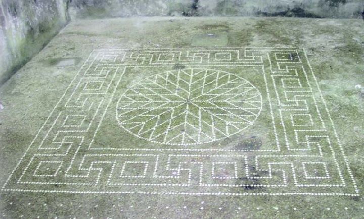 Pero aquí Marco (más información) no estaba contando toda la verdad. Sabemos por Francisco de Paula Oliver -que entonces contaba con dieciséis años y que publicó un detallado trabajo sobre el templo en 1886, al que más adelante nos referiremos- que los participantes en la excavación tenían la certeza de que el mosaico encontrado era de época romana, y con gran probabilidad del siglo I.