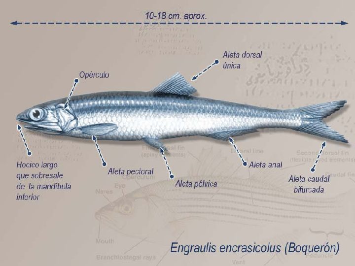 Anchoveta de California o Engraulis mordaz. Exclusiva de los océanos Índico y Pacífico.
