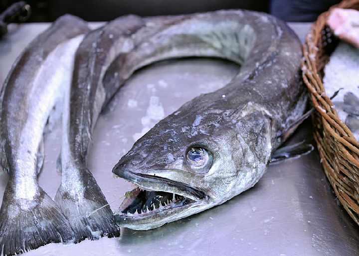 Merluza austral o Merluccius australis. En el mercado se presenta fresca y sin cabeza.