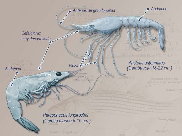 En España se consumen principalmente dos especies de gambas: la gamba blanca o Parapenaeus longirostris y la gamba roja o Aristeus antennatus, de excelente calidad en el Mediterráneo.