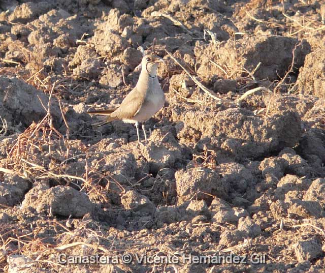 La Canastera es una limícola de tamaño mediano, cuya figura recuerda más a una golondrina de mar, con sus patas cortas y alas largas, que a un ave terrestre. Su coloración general es marrón, graduado desde el más claro de la cabeza hasta el más oscuro de las alas, hasta llegar a acabar en el negro. Contrasta con la zona ventral, que es blanca. El plumaje en la época nupcial incluye un babero de color crema claro, bordeado por una línea negra que llega hasta el ojo.