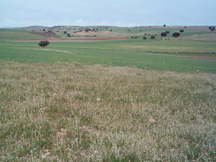 La deforestación y las roturaciones para la puesta en cultivo de grandes territorios que por su relieve eran propicios a la agricultura, dieron lugar a los extensos paisajes cerealistas que aparecen en la mitad septentrional de la región. Salpicados, en algunas zonas, por vetustos ejemplares de encinas, adehesadas, como en los Llanos del Tornajuelo, Aguzaderas, Derramadores, que representan todo un ejemplo de conjunción de dos usos diferentes, con pleno aprovechamiento de ambos, uno de menor productividad pero que confiere estabilidad al sistema, la encina, y otro más inestable y productivo, el cereal. Aunque los relieves de las estepas son llanos o de escasa pendiente, se producen importantes episodios erosivos.