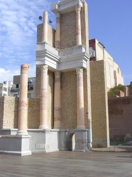 Aquí se exponen los restos de basas, fustes y capiteles del teatro. También hay una maqueta, junto a la cual se ofrece al visitante una detallada explicación de la arquitectura del edificio y el canon de Marco Vitrubio Polión. Las dimensiones de las columnas halladas en el teatro nos indican la significación del edificio. Por su ubicación junto al puerto, el teatro daba una imagen de grandiosidad a todos los que llegaban por mar a Carthago Nova. Muchos de los elementos arquitectónicos del edificio fueron empleados como material de construcción para los muros y cimientos: columnas, capiteles e incluso estatuas formaban parte del Barrio Bizantino. En la construcción de la Catedral Vieja en el siglo XIII también se utilizaron columnas y sillares de piedra procedentes del Teatro. Además de los elementos arquitectónicos, podemos admirar la figura de un Togado Capite Velato que se cree que representa la figura del emperador Augusto. Esta pieza se halló en el área donde están los restos del foro de Cartagena.