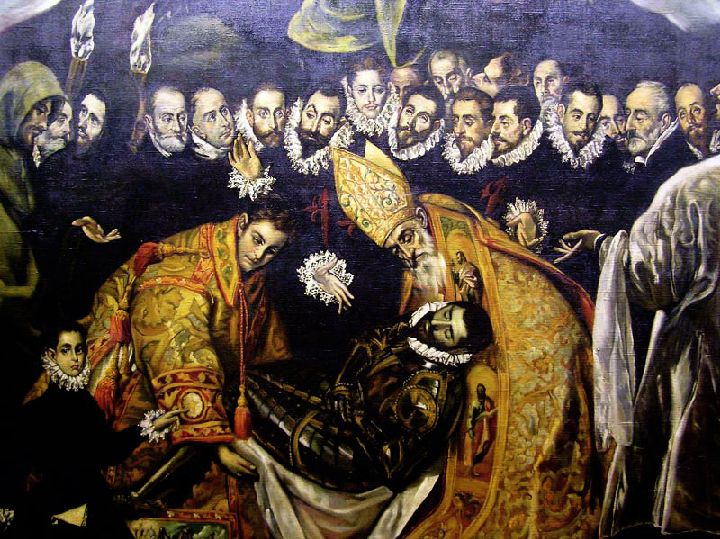 El primer ámbito se titula 'Mariología'. Consta de 11 óleos en los que la Virgen María es la figura principal, cinco de ellos con el tema de La Anunciación, dos con el de la Coronación de la Virgen y el resto son La Asunción, La Inmaculada, La Caridad y una Virgen María (sin ninguna advocación). El segundo ámbito se titula 'La Natividad y Vida de Cristo' y en él se disponen los 15 cuadros que tienen como tema principal sucesos de la vida de Cristo desde su nacimiento hasta Pentecostés pasando por su pasión, muerte y resurrección, exceptuando el bautismo, que queda expuesto en el siguiente espacio. En el tercer ámbito, titulado 'Vida de Santos', se encuentran el Apostolado completo y los lienzos dedicados a santos y mártires. En total, lo componen 33 cuadros. Por último, la exposición presenta un cuarto ámbito llamado 'Retratística'. Lo conforman 14 cuadros, entre los que se encuentra la copia del más importante de los retratos de 'El Greco', 'El caballero de la mano en el pecho'.