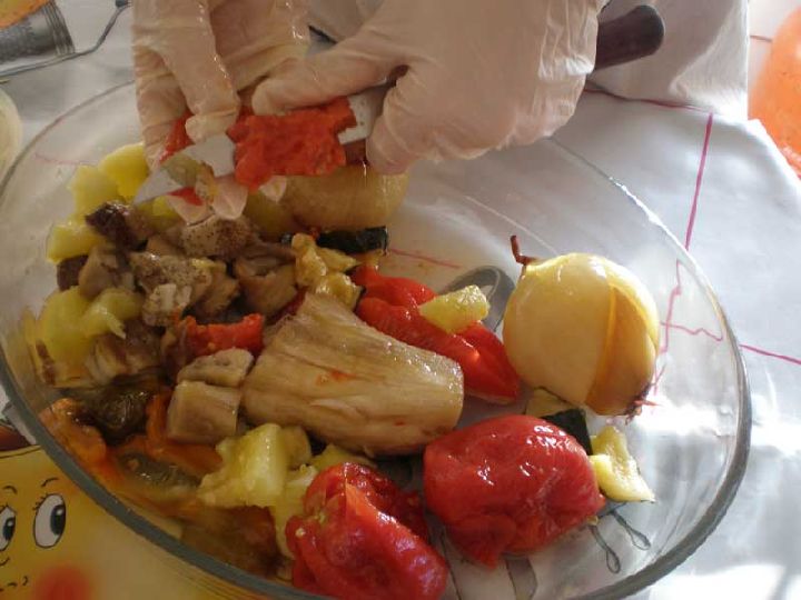 Este plato es un ideal para un entrante, o bien como acompañante de una carne o pescado. Es un plato que se elaboraba mucho en la época estival, ya que las verduras y hortalizas utilizadas se recolectaban en primavera - verano, pero actualmente disponemos de ellas todo el año, por lo que ha pasado a formar parte del menú durante toda época.