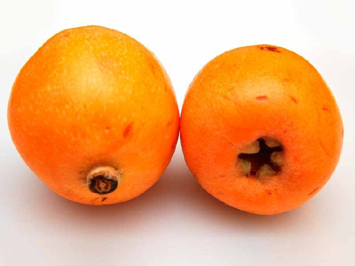 Las tonalidades que definen al níspero son el anaranjado para la piel y esos mismos colores, aunque algo más atenuados, para la carne o pulpa. Las semillas muestran tonos oscuros, amarronados.