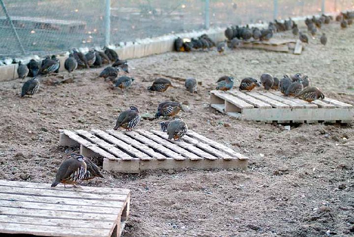 En la Región de Murcia existen granjas de cría de perdiz en Puerto Lumbreras, Bullas, Totana, Alhama de Murcia y Cartagena. Hay diferentes tipos de granjas, desde las que producen polluelos de forma intensiva, hasta aquellas que disponen de parques de vuelo donde las perdices se desarrollan prácticamente en libertad. La producción varía en función de la granja, ya que mientras algunas presentan 8.000 ejemplares nacidos al año, otras pueden llegar a registrar 40.000. De ellos, una parte se destina a la suelta en montes públicos (Reserva Regional de Caza y Refugios de Fauna), mientras que otra se reserva para la venta al público.