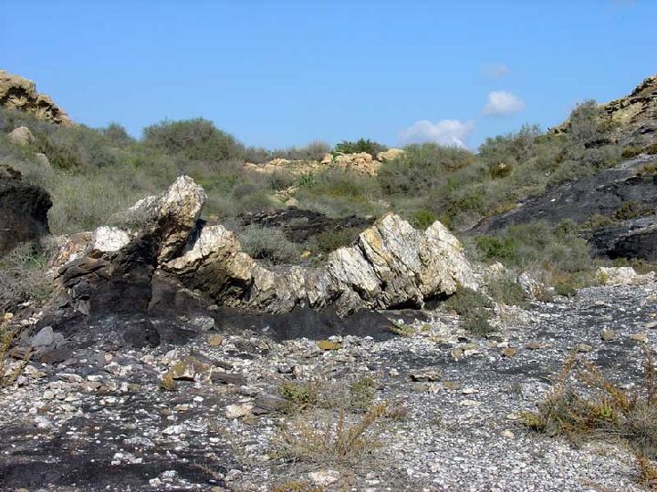 En Murcia son muy abundantes pero aquí aparecen intercaladas con otras rocas, por lo que sus paisajes típicos no se encuentran. Podemos encontrar niveles intercalados entre las filitas alpujárrides y maláguides y entre los micaesquistos Nevado-filábrides, que afloran en las sierras litorales (Carrasquilla, Almenara, Lomo de Bas, las Moreras, Algarrobo, lo Alto, la Unión, Cartagena, etc.) y en los relieves interiores béticos (sierras de: Carrascoy, el Puerto, Torrecilla, Espuña, la Tercia, etc.).