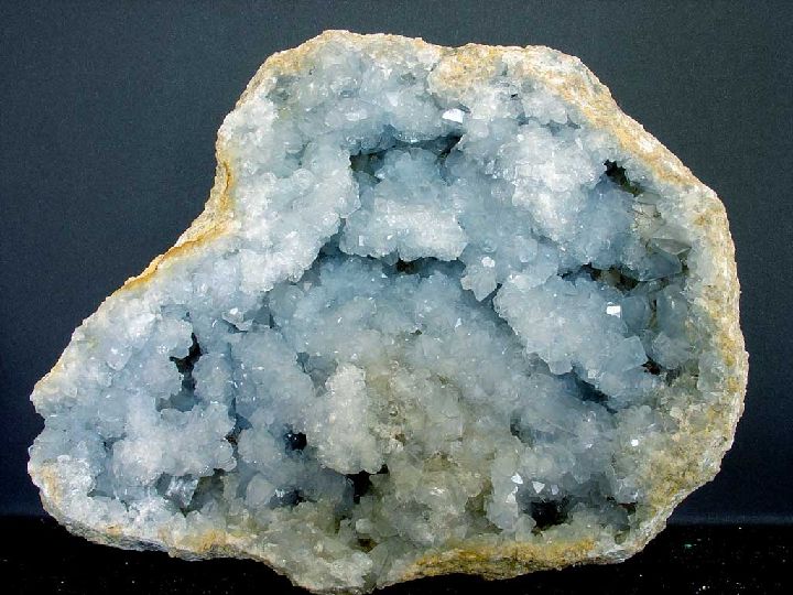 Mineral fundamentalmente diagenético (sedimentario) que suele aparecer en fracturas y bolsadas en calizas, areniscas, margas y rocas evaporíticas; asociado a calcita, dolomita, fluorita, yeso y azufre. Menos común en filones hidrotermales con fluorita y plomo.