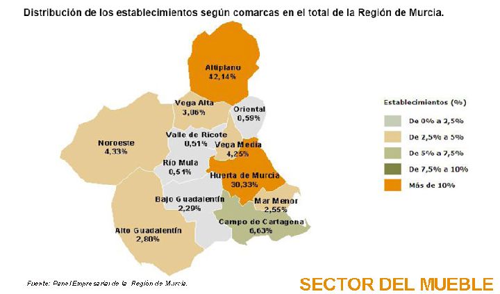 Las empresas del sector se localizan por toda la geografía regional, aunque el municipio de Yecla es el epicentro de la actividad debido en parte a su crecimiento exponencial desde finales del siglo XX.
