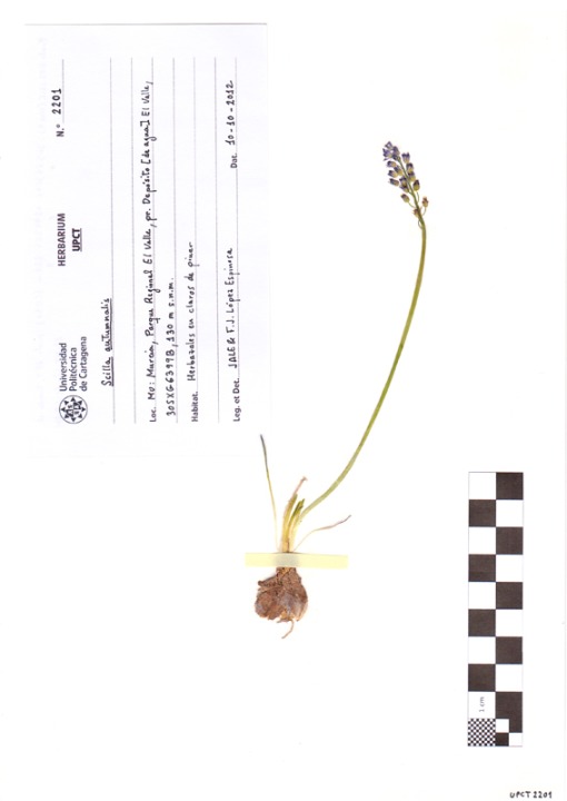 En otoño, transcurridas un par de semanas desde las primeras lluvias importantes tras el periodo de sequía estival, la escila florece explosivamente, con gran número de individuos en floración coetánea, junto a otra especie serótina también muy común de nuestros pastizales litorales, el narciso de otoño (Narcissus serotinus).