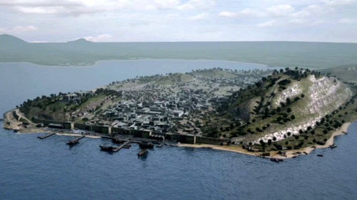 "Después de Abdera, viene la Nueva Cartago, fundación de Asdrúbal, sucesor del Barca, padre de Aníbal. Es entre todas las ciudades de la zona la más poderosa; goza de una situación natural fuerte y de unas murallas bellamente construidas. Dispone de varios puertos de una laguna y tiene minas de plata. Tanto en ella como en sus cercanías abundan las industrias de salazón y es el mayor emporio para los habitantes del interior, que vienen a buscar las mercancías llegadas por mar y para los comerciantes extranjeros que quieren adquirir los productos locales".