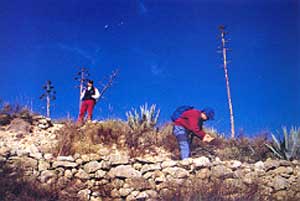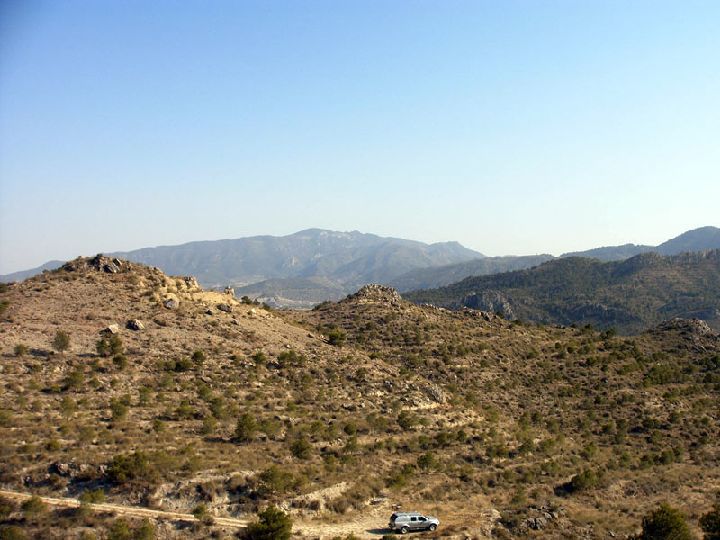 En lo alto del cerro de Bolvax hay dos grandes piedras que recuerdan a un dolmen; es en este punto donde podemos observar con más claridad el itinerario a seguir para llegar al cerro del Morrón, que se ve al fondo hacia el Este.