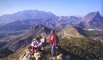 Desde aquí subimos a la cumbre, primero sorteando y trepando entre las gradas de la reciente repoblación de pinos y los últimos metros por peñas rocosas que nos asoman a la cara Sur, con la rambla del Moro abajo. En la cumbre del cerro del Morrón contemplamos la puerta de entrada al Valle de Ricote por el Norte, entre la Atalaya de Cieza y Bolvax.