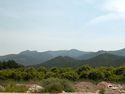 Bajamos desde aquí nuevamente al camino y a la casa en ruinas y seguimos por el mismo hacia el Este, sin coger un camino que parte a la izquierda. Nuestro camino va descendiendo por la ladera Norte. Allí el camino finaliza junto a la torre de tendido eléctrico, así que unos veinte metros antes -a la derecha por un ramblizo- bajaremos por una senda hacia la rambla del Moro.