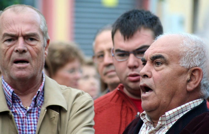 Llega a la casa de un hermano cantor y dando un fuerte golpe en la puerta con el mango de la campana dice: 'Ave María Purísima', a lo cual el que está dentro le responde 'Sin pecado concebida', llamándolo por su nombre le dirá 'vas a ir a cantar', ante una respuesta afirmativa y aunque sea éste el primer hermano que despierta le dirá: ¡anda que no eres el último! evitando que siga durmiendo un rato más. Así lo hará con todos y cada uno de los hermanos cantores, a través de los senderos de la huerta recorriendo unos cuatro o cinco kilómetros a buen paso y en absoluto silencio.