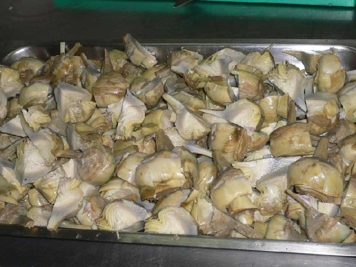 Primer paso: Limpiar las alcachofas y trocearlas en cascos.
