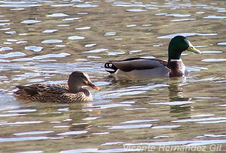Es el pato más abundante de nuestra región. Con más de medio metro de longitud, el macho se distingue de la hembra por su coloración más vistosa. Con la cabeza irisada de verde, un collar blanco y el pecho marrón oscuro. Sobre la cola, blanca, aparecen revisadas las plumas centrales del dorso. Destaca el color amarillo de su pico.