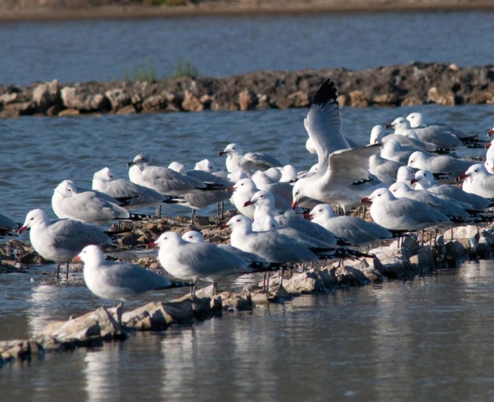 La vegetación sumergida se ve progresivamente dominada por tapetes de cianofíceas y por bacterias y algas unicelulares (Dunaliella).
