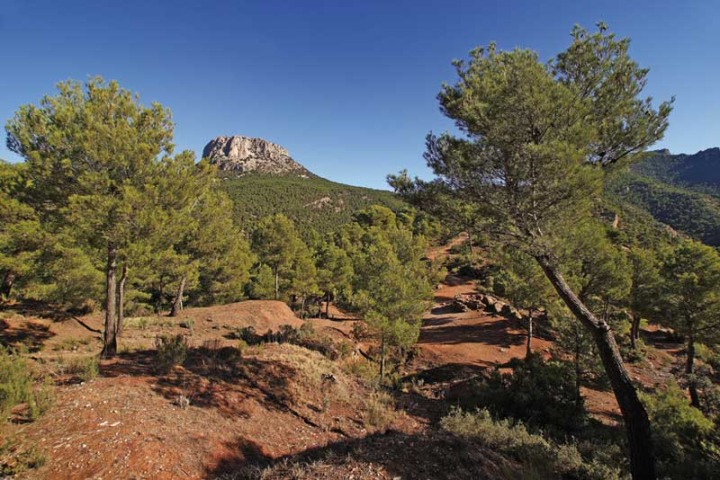 Dejaremos las admirables vistas del barranco de los Ballesteros para descender por la umbría del barranco de Enmedio. A partir de aquí, seguiremos por la variante 62.1, combinando ambos PRs, pero manteniendo siempre nuestra orientación sobre las marcas blancas y amarillas. De frente, y a lo lejos, veremos el imponente promontorio del Morrón de Espuña y las escarpadas paredes del Pedro López.