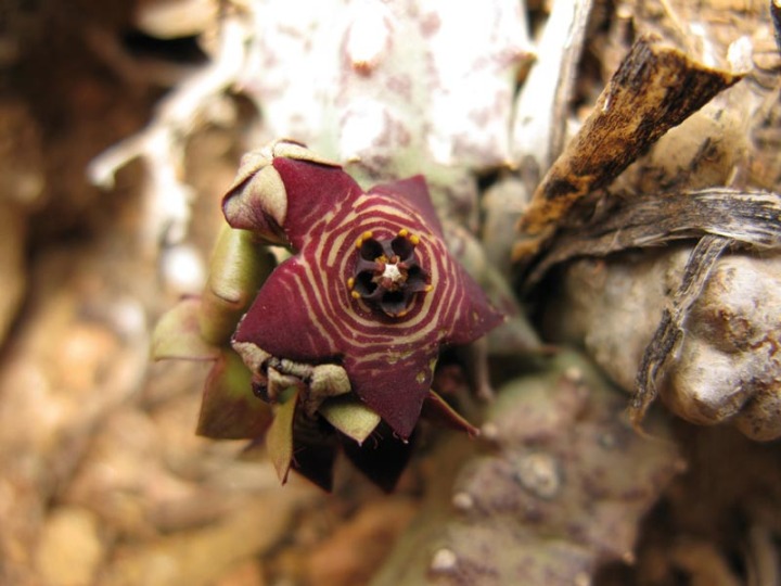 Las flores de esta planta desprenden un desagradable olor fétido con el que atrae a sus polinizadores, principalmente dípteros (moscas). Es una especie de gran interés científico, por ser, junto a su congénere (Caralluma munbyana) las únicas plantas del continente europeo que poseen hábito cactiforme, con lo que contribuyen notablemente a nuestra biodiversidad. La taxonomía de estas especies es compleja y como prueba de esto cabe indicar que esta especie se ha incluido al menos en cuatro géneros diferentes (Boucerosia, Caralluma, Stapelia y Apteranthes).