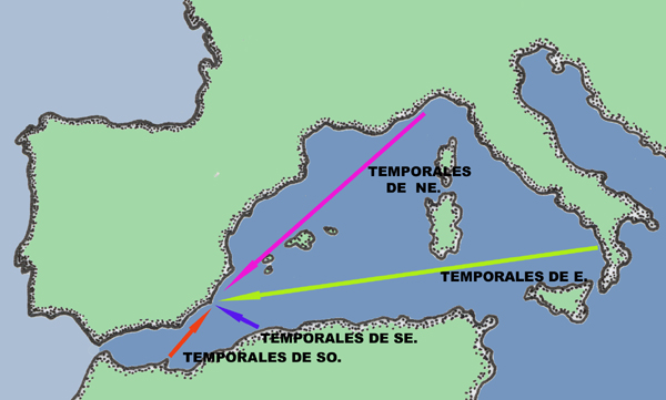 El tramo comprendido entre El Escull del Mojón y Cabo de Palos se ve especialmente afectado por el oleaje del NE y del E, siendo frecuentemente temporales de gran intensidad, especialmente los del E por el importante fetch con el que se han podido originar (figura 4).