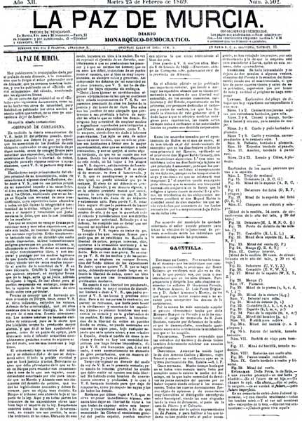 La Paz de Murcia fue el primer periódico diario importante que existió en la región. Sus páginas son de un gran valor histórico, pues reflejan los acontecimientos que sucedieron en la ciudad de Murcia en la segunda mitad del siglo XIX. La Paz informó, entre otras noticias, de la inauguración del Teatro Romea, o de la llegada del ferrocarril a Murcia.