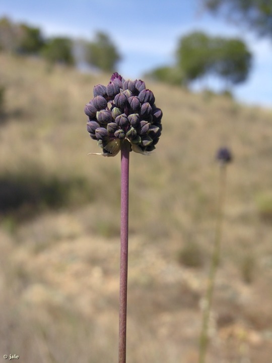 Es una hierba que pasa muy desapercibida en los matorrales donde crece, incluso durante el periodo de floración, por la escasa vistosidad de sus flores y el porte de la planta, prácticamente se mimetiza con el fondo (otras hierbas secas y piedras). Los tallos e inflorescencias secas permanecen erguidas durante tiempo, y son útiles para detectarla e identificarla; en concreto hay que desmenuzar la inflorescencia y reparar en las bracteolas, estructuras a modo de pequeñas escamas que se encuentran en la base de los pedicelos de las flores, y que otros ajos de cabezuelas tan pequeñas no tienen (Allium sphaerocephalon).