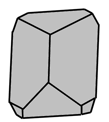 Hábito: Cristales aislados, más o menos tabulares y en doble punta de lanza, que asemejan a cuñas.