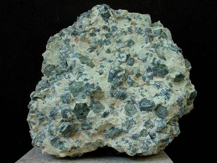 En la región de Murcia es un mineral bastante común en esquistos de bajo grado de metamorfismo (esquistos verdes y cloroesquistos). En fracturas de metabasitas y especialmente de ofitas por alteración de minerales ferromagnesianos o por procesos hidrotermales. Los mejores ejemplares procedían de las ofitas de Cehegín, especialmente de Los Baños de Gilico y de las minas existentes en las proximidades de la Copa de Bullas, en ambos casos asociados a mineralizaciones de magnetita, con las que forman bandas alternantes.